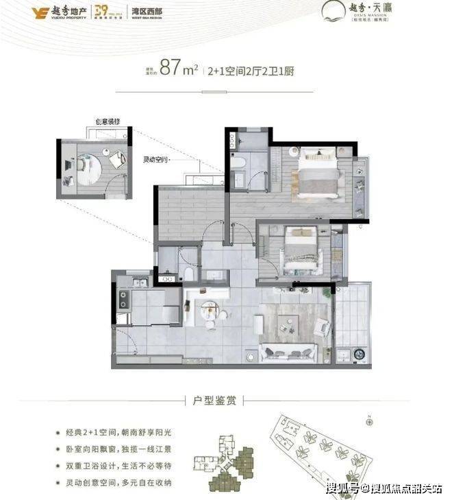 项目主推 87㎡/104㎡/125㎡ N + 1 创意空间户型,虽未提及新规相关内容,但得房率高达 94 - 98%,空间利用高效。建面约 87㎡户型为 2 + 1 创意空间 2 卫,南向三开间,直揽江园,使用率约 94%;104㎡户型为 3 + 1 创意空间 2 卫,南向 4.5 米开间,约 96% 使用率,约 6 米超宽横厅,揽江园景观面;125㎡户型为 3 + 1 创意空间 2 卫,南向 4.5 开间,15.3 米阔绰采光面,约 98% 使用率,近 8 米对流进深,约 6.7 米巨幕景观面,近 5 米景观阳台头排亲珠江,南北对流,主卧套房进深约 7 米,L 型瞰景飘窗。各户型通过合理布局,充分利用空间,满足不同家庭结构的居住需求,提升居住舒适度。