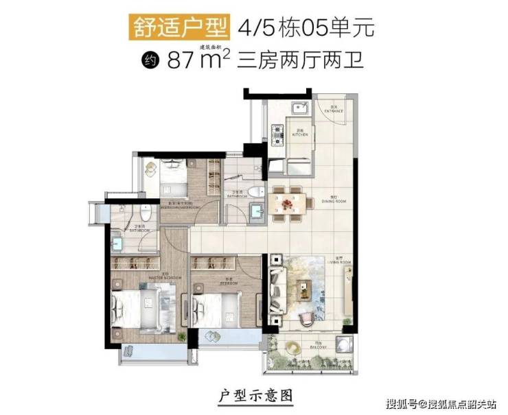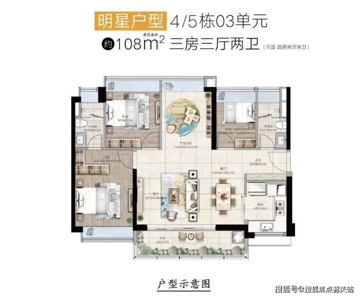 时代天境推出的 87-108㎡三至四房(可改)户型,作为片区内实用性较强的代表,空间布局合理,使用率高,为居者带来舒居体验的显著跃升。