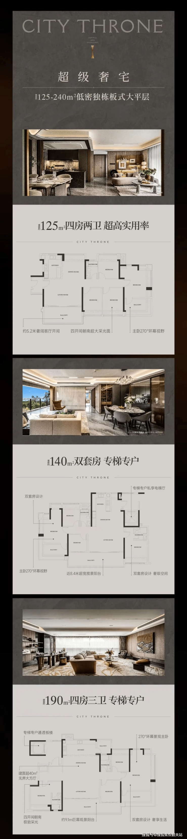 1号楼:125方户型,2梯4户塔楼设计,层高3米,总层高32层。 此外,T7栋作为央景楼王,主打约140平户型,货量仅32套;T5栋则是约240方大平层板房,共54套货量。