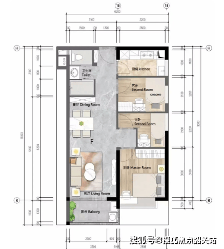 主卧带有南向阳台,算是一个卖点。当然,也可以根据实际需求,将阳台改成卧室一部分。
