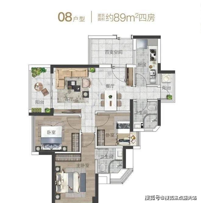 户型设计独具匠心,62 - 89㎡二至四房创新户型,高使用率空间设计。同等面积享多一房,老城芯热土上,以空间塑造舒适生活,以品质匹配精致人居,全面升级生活体验。无论是温馨的二人世界,还是三代同堂的大家庭,都能在这里找到理想的居住空间,合理的空间布局,保证了各个功能区的独立性与舒适性,为家庭成员提供宽敞的生活空间。