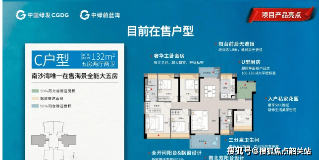亮点:南沙湾稀缺五房户型,南北双阳台+入户花园,主卧270°转角飘窗。