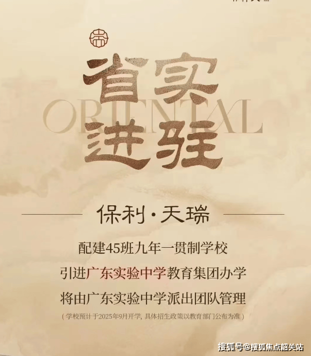 保利天瑞位于广州市天河区五山汇景新城板块内,地处珠江新城和琶洲金融城两大中轴间的核心位置。项目所在的地块前身是2023年年底出让的中铁物流园地块,最终以4.6万元/㎡的楼面价成交。该地块以其大面积、整体性强、容积率低(2.93)、限高65米以及配建九年一贯制学校等特点而备受瞩目。特别是配建的45班公办九年一贯制学校已官宣引进广东实验中学教育集团办学,由广东实验中学派出团队管理,为天河区教育注入了新的活力。