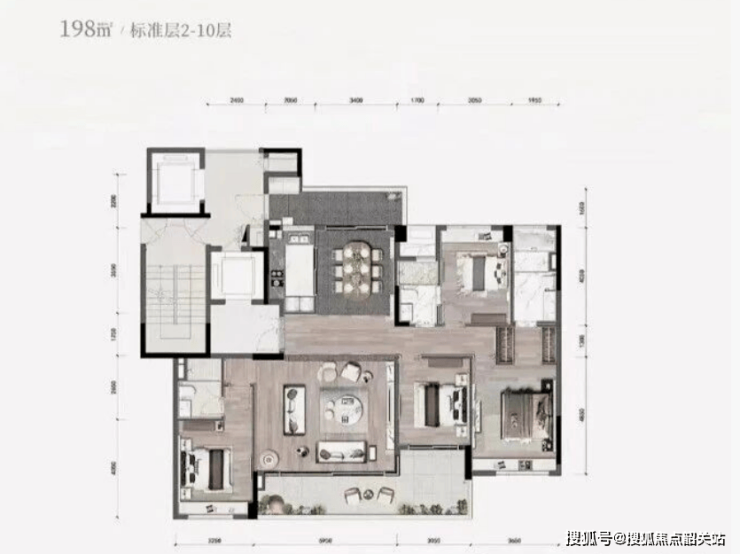 建面 290㎡四房四卫: 小区楼王户型,位于中轴,享双重景观,单价 6.8-7.2 万/㎡,中高楼层视野无遮挡。