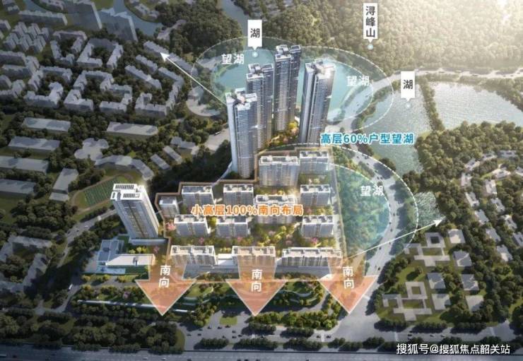 项目超高层建筑高约150米,延续原有约20米地形高差,建成后将成为【金沙洲天际线】,全景观全明设计,成就约10公里范围内无遮挡视野,充分展现南赏园林,北瞰湖景的居住体验。