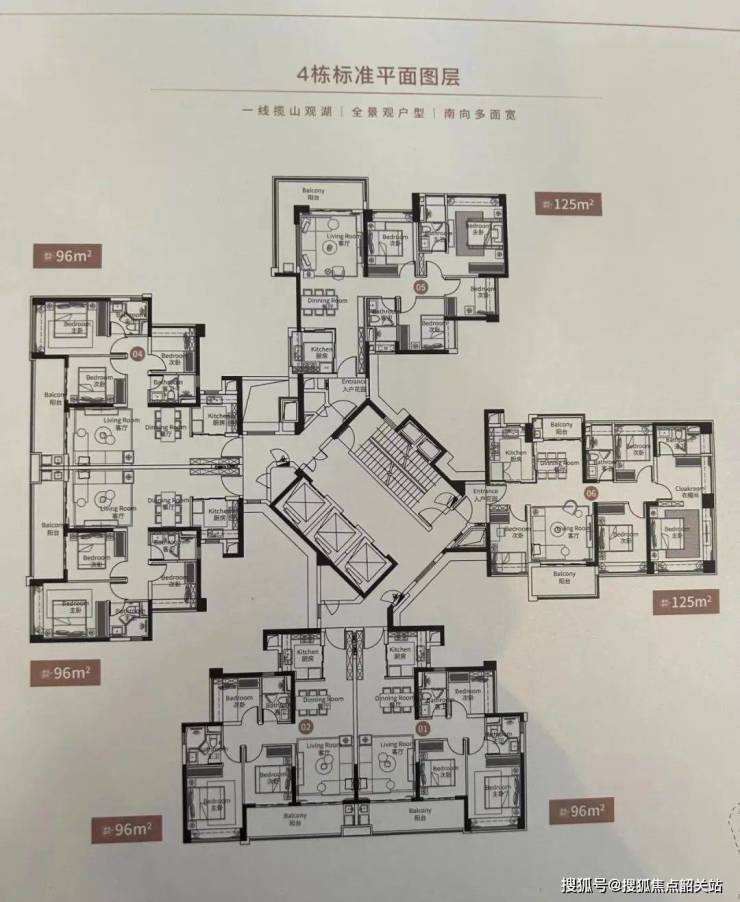 目前在售产品为,96-125-140-160平三四房,户型图如下: