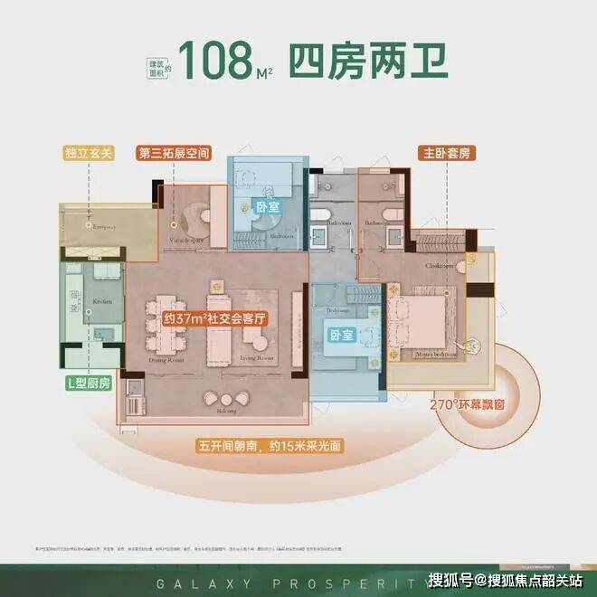 星河盛世禧悦推出的户型涵盖了建面约88-108平方米的三至四房单位,每个户型都经过精心设计以满足不同家庭的需求。例如,A1户型的三面采光设计让室内光线充足;B1户型则通过预留S墙收纳空间提升了实用性;C户型更是凭借五开间朝南和超过6米的跑道式阳台成为一大亮点。