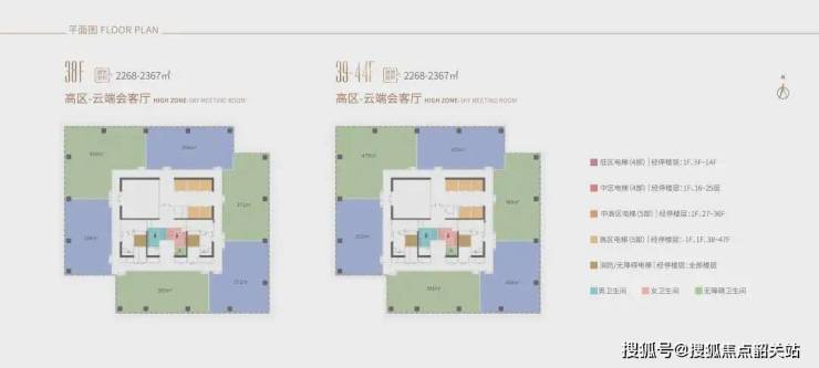电梯:智能派梯、三菱品牌,共20台客梯,其中中高区(27-36F)5台,高区(38-47F)5台