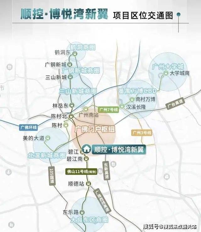 顺控博悦湾新翼紧邻广州,驾车5公里即到广珠西高速口接入,半小时轻松畅达南海、番禺、顺德、禅城各商圈。通过广珠西高速,约30分钟可到达广钢、番禺等广州核心商圈。此外,项目距离地铁7号线南涌站约3公里,5站可达广州南站,10站可达万博广场,轻松畅达两城。规划中的地铁11号线通达三山新城与广钢新城,项目旁边就是碧江站,未来4站可达广州南站,7站可达广钢新城。