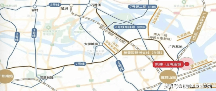 地铁作为城市交通的主动脉,具有快速、便捷、准时等优点。凯德山海连城周边双地铁环绕,17号线和8号线东延段(7站琶洲)在此交汇。其中,地铁8号线东延段已于2024年动工,预计2027年开通试运营。届时,从项目出发,7站即可直达琶洲,大大缩短了与市中心的距离。此外,项目距离莲花站TOD枢纽也仅几步之遥,莲花站是3城轨2地铁的交汇点,佛莞城轨、穗莞深城轨琶洲支线、广中珠澳城轨(规划建设中)以及地铁17号线、8号线东延段都在此汇聚。通过这些轨道交通,您可以轻松到达广州的各个区域,甚至可以直达中山、珠海、澳门等周边城市。🚇