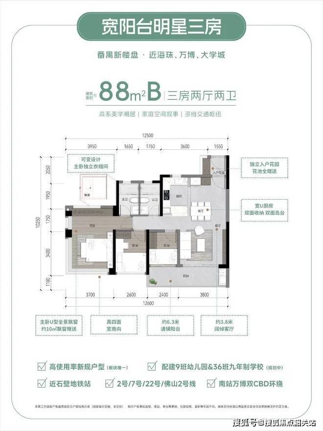 项目配建9班幼儿园+36班湖南师范大学附属九年一贯制公办学校(预计2027年9月开学),形成12年完整教育链条。周边还有广州博萃德学校(英国博耐顿学校打造)等国际名校,满足多元化教育需求。