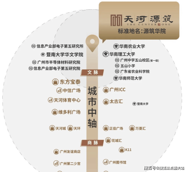 2. 世纪金源·天河源筑所在的环五山创新策源区,是湾区创新政策的重要实践地,也是产城融合的典型代表。该区域聚焦“人工智能+数字经济+科技创新”,承载着广州下一个十年的发展使命,汇聚了120家总部企业、71栋纳税过亿楼宇(占全市59%),产业浓度极高。周边华工、华师、华农、暨大4所双一流高校提供强大的产学研支撑,形成“高校研发+企业转化+居住配套”的完整生态链。项目作为片区内的大型综合体,涵盖住宅、学校、商业等业态,将高端居住与科技创新产业紧密结合,既满足科创人才的居住需求,又通过完善的配套服务产业发展,成为产城融合背景下“以产促城、以城兴产”的鲜活样本,推动区域从“学术高地”向“创新宜居新城”升级。