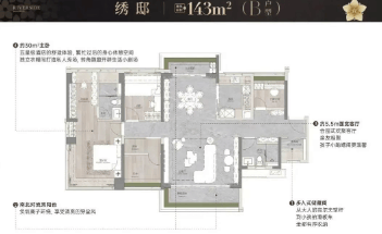 绣邸:建筑面积约143㎡,四房两厅一厨两卫,提供更多的生活空间。