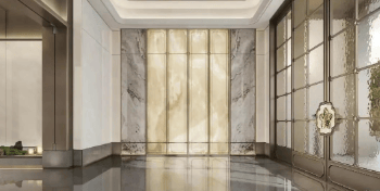 泗水归堂:取春天清风徐来、水波不兴的意象,以“广绣隐现、幕墙灵动”为设计概念,打造泗水归堂空间入口照壁屏风,彰显归家尊贵感与品质。