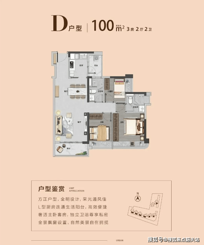 100㎡三房臻藏:南向10米阳光幕墙,东南独栋视野,南北双阳台对流。