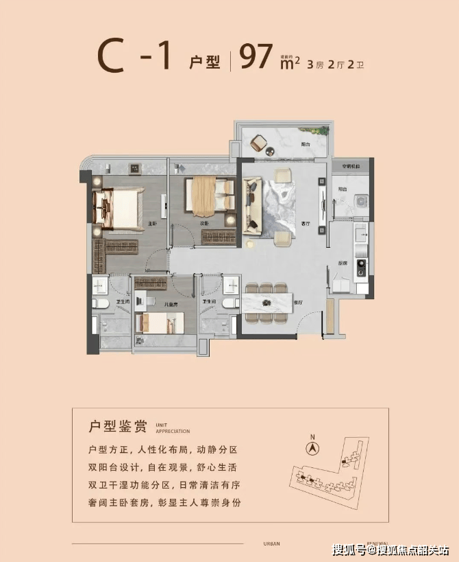 96㎡臻稀三房:270°无界园景,三面采光无遮挡,双卫奢适配置。