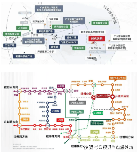 目前,项目距离最近的地铁6号线香雪站约3.8公里,步行通勤不太现实。不过,小区门口就是黄埔有轨电车2号线开源大道东站,从家门口出发,5站可达香雪站,接驳地铁6号线后可直达天河、海珠、越秀等地。未来,随着6号线东延段和23号线在植树公园站交汇,交通便利性将进一步提升。