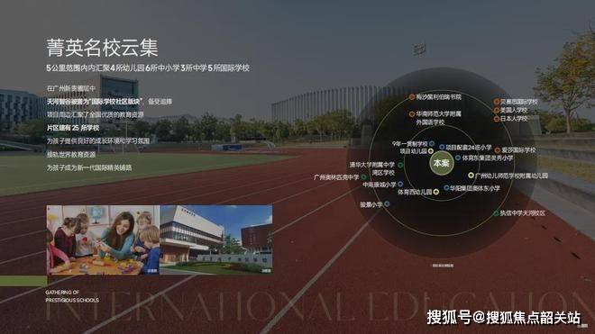 教育配套:项目自配 15 班幼儿园和 24 班小学,其中 24 班小学引进广州天河外国语教育集团合作办学。广州天河外国语学校自 2012 年创办后迅速成长为优质教育品牌,享有多项称号。学校毗邻月亮湖,将打造现代山水书院。隔壁缦云配建九年一贯制学校且引入天河外国语教育集团办学。综合板块资源,周边还有天外、天执、清湾等公办名校以及贝赛思、爱莎等顶级国际学校,教育资源丰富优质。