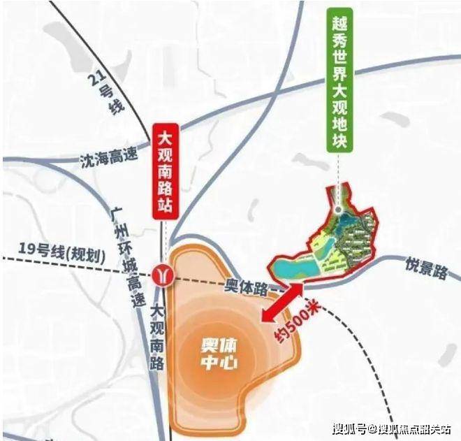 交通配套:地块位于天河区世界大观,悦景路以北,帝景山庄以西。目前距离最近的地铁大观南路站约 2km,业主主要通过悦景路出行,可连接珠吉路、奥体路,进而接驳广园快速、大观南路等主干道,上下高速方便。近期悦景路牛奶厂段动工拓宽,预计 2025 年建成通车,将改善交通状况。此外,世界大观将新建道路直接接驳奥体路与机场二高速,届时板块交通短板将被补齐,居民出行更为便捷。