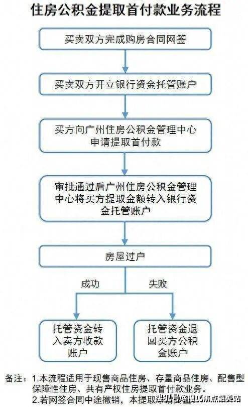 (2)买卖双方完成购房合同网签及开立银行资金托管账户后,可向广州住房公积金管理中心申请办理提取住房公积金支付购房首付款。