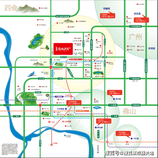 交通网络:项目周边拥有“四横四纵”的高速公路网,并且靠近广佛肇城轨(2站到广州)、规划中的佛山地铁12号线、有轨电车T4号线等轨道交通,使出行更加便捷高效。