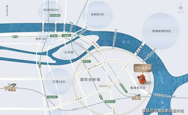 保利领秀海位于番禺莲花湾板块,地处广州东南,地理位置优越,交通便利。从项目出发,向东是广州市的金融核心区琶洲,向南则是万博商业区,向西是大学城,向北则是黄埔产业集聚区。这一地段具备极高的产业发展潜力与升值空间。