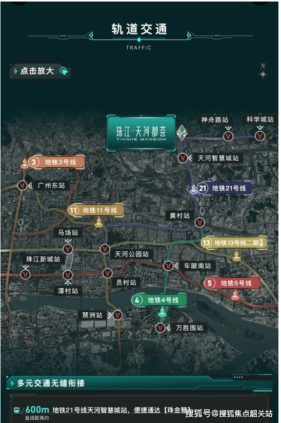 珠江·天河都荟距离地铁21号线天河智慧城站仅约600米,步行时间大约8分钟,提供便捷的通勤条件。通过地铁网络,居民可以快速到达珠江新城等市中心区域。此外,周边还有多条公交线路,方便居民出行。