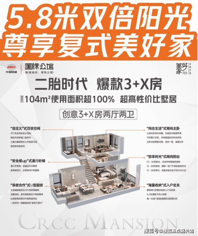 中国铁建国际公馆是广州东部在售咬合式复式,全新复式4.0设计,打造南向对流,打造平层无法享受甚至想象的居住体验。
