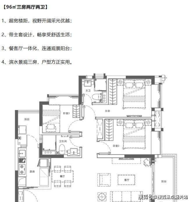户型设计精巧,涵盖 86 - 100㎡悦景三房,另有 74 - 162㎡湖景二至五房可选。以 86㎡三房两厅一卫户型为例,南北对流,合理分区,舒适实用;观景阳台可将湖园美景尽收眼底;餐客厅阳台一体化,实用率高;户型方正通透,采光通风一流。86㎡三房两厅两卫户型,布局合理,视野开阔采光优越;带主套设计,畅享舒适生活;L 型厨房,洗切煮炒一气呵成;宽景景观阳台,俯瞰珍稀水景。96㎡三房两厅两卫户型,超宽楼距,视野开阔采光优越;带主套设计,享受舒适生活;餐客厅一体化,连通观景阳台;滨水景观三房,户型方正实用。100㎡三房两厅两卫户型,三开间朝南,采光通透舒适实用;宽奢带主套设计,瞰景大三房;客餐厅一体,动线布局科学合理;7.3 米超宽阳台,私享尊崇生活。各个户型都方正实用,动静分区合理,能满足不同家庭结构的需求。