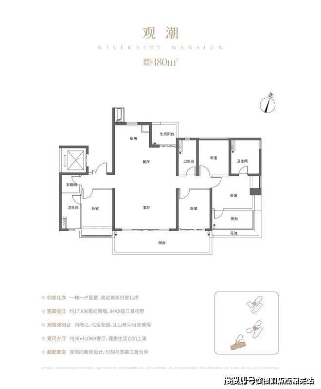 建面约125㎡双主套四房:创新设计双南向套房,满足三代同堂的私密需求。约7.2米宽景阳台连接次卧,形成可变式儿童活动区。U型厨房配备博世三件套,让烹饪成为享受。