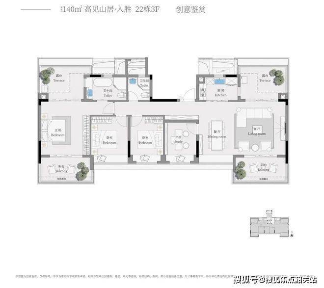 藏星(建面约 155㎡上叠):私梯入户,彰显尊贵。多功能家庭厅三面采光,让空间明亮通透。南向大露台延伸宽屏生活,顶层灵动空间可根据业主喜好进行个性化打造。全南向功能房,南北对流奢华主卧套间,让业主在享受舒适居住的同时,还能将山景园景一览无余。