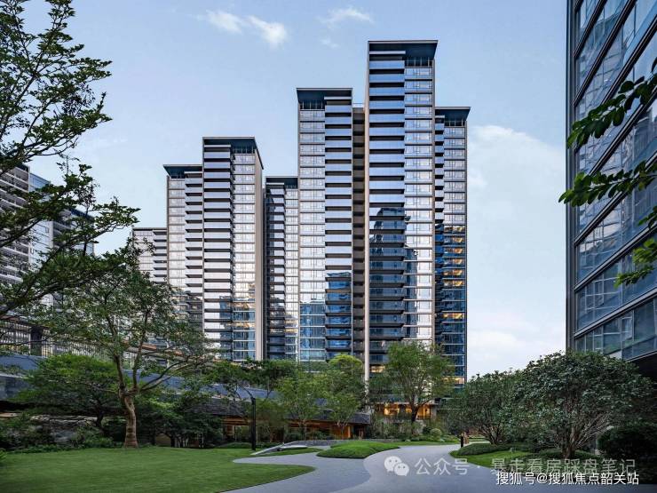 项目总占地面积约8.2万㎡,总建筑面积约24万㎡,整体采用围合式布局,规划10栋27-29层的住宅建筑,最大楼间距接近百米,相较于传统行列式布局,围合式布局可实现中央园林景观的最大化,同时保障每一栋楼的采光与视野,减少楼栋之间的视线干扰。项目容积率3.65,在天河核心区同类型住宅项目中处于较低水平,相较于天河核心区普遍4.0以上的容积率,项目更低的容积率意味着更高的人均绿化面积、更宽的楼间距、更少的居住户数,居住舒适度更高。项目总户数1231户,车位配比1:1.65,总车位数量1954个,可充分满足业主的停车需求,同时项目实行人车分流设计,车辆直接从小区入口进入地下车库,地面无机动车通行,既保障了小区内老人、儿童的出行安全,也减少了车辆噪音与尾气污染,提升了小区内部的居住环境。项目在规划设计中,充分考量了广州的气候特点,所有楼栋均采用南偏东的朝向设计,贴合广州夏季主导风向,可实现良好的自然通风效果,同时避免西晒带来的室内温度过高问题。项目社区内规划了多元化的公区配套,包括高端会所、无边际泳池、健身空间、儿童活动中心、社区商业等,可满足业主日常社交、健身、休闲等多种需求,同时项目配建的学校、幼儿园均位于社区周边,实现了居住、教育、休闲功能的合理分区,既保障了生活便利性,也维持了居住空间的纯粹性,为业主打造了低密、舒适、完整的居住社区。