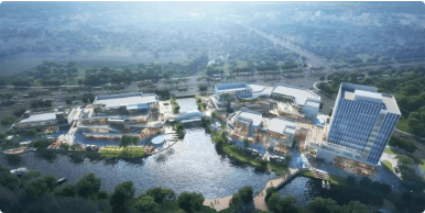 南区设有约4万㎡滨水商业,与湿地自然融为一体;