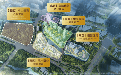 东区为纯住宅组团,临近地铁与滨水园林,兼顾奢享与高效;