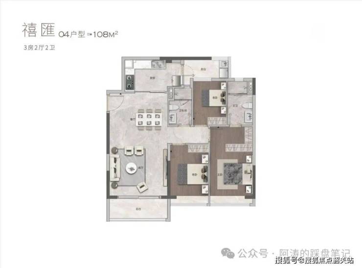 108㎡户型,适合改善型家庭居住。户型格局方正,南北通透,采光通风俱佳,客厅宽敞大气,连接超大阳台,视野开阔,能够俯瞰城市繁华与园林美景;三个卧室空间充足,主卧配备独立卫生间与衣帽间,彰显主人的尊贵身份,次卧宽敞舒适,书房(可改造为儿童房或老人房)布局合理,满足家庭的多样化需求;厨房宽敞明亮,配备全套德系博世厨电,操作便捷,让烹饪成为一种享受;卫生间干湿分离,设计人性化,提升了居住的舒适度。这个户型空间宽敞,布局合理,品质卓越,能够满足改善型家庭的居住需求,让家人享受更加舒适、奢华的居住体验。