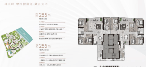 户型:建面约233-285㎡四至五房,东向/东南向一线望江,极致3.4-3.6m层高