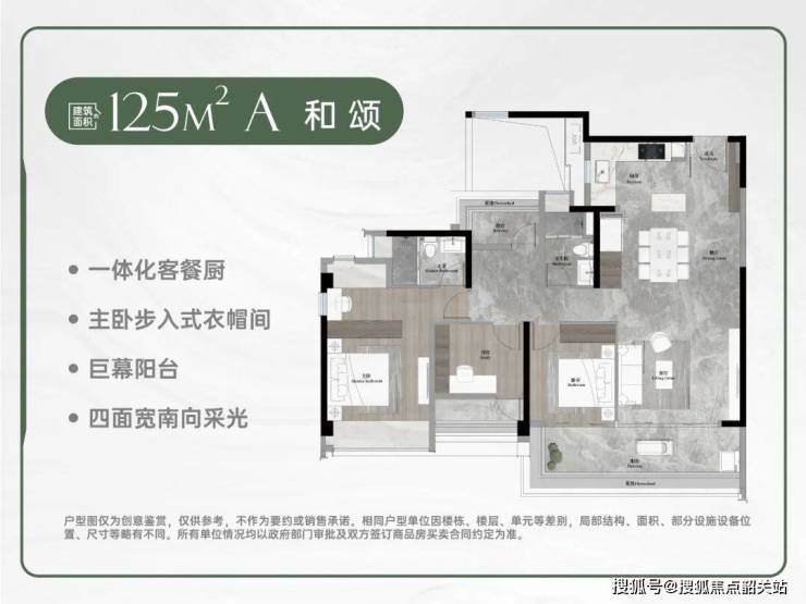 125平方米户型属于项目中的紧凑改善型产品。该户型通过南向大阳台设计,将室内空间与景观视野有效结合,使客厅采光更加充足。同时,客餐厅一体化设计提升了整体空间利用率,使公共活动空间更加开阔。