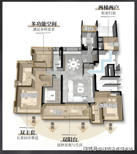 在户型设计上,我们充分考虑了广州的气候特点。针对回南天潮湿的问题,我们在关键位置增设了通风井,增强了空气对流,保持室内干爽。同时,户型采用全南向设计,独栋别墅更是做到了多开间朝南,超高实用率,保证每户独享私密性。特别是LDKB一体化空间设计,实现了空间的极致利用,市面上很难找到同类竞品。