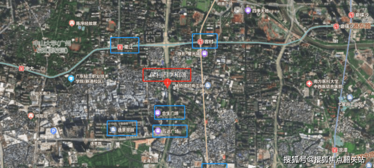 保利四季和颂位于广州大道南 788 号,地处琶洲数字经济区及中大创新谷海珠两大核心板块交汇处。虽在海珠的位置略显尴尬,周边以城中村和布匹批发产业为主,但仍具一定亮点。
