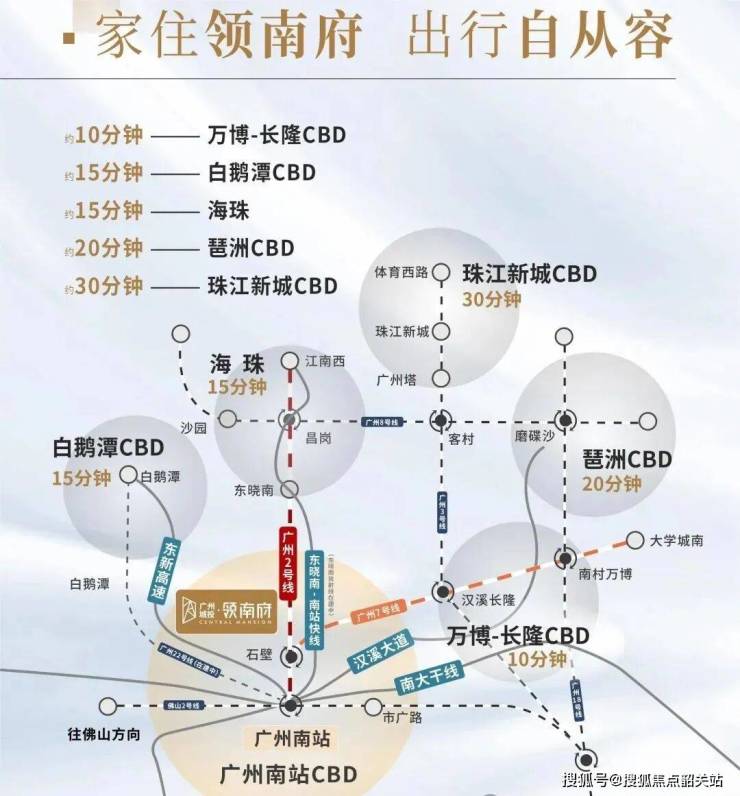 首先,项目紧邻广州南站,这是中国南方最大的高铁枢纽之一,也是亚洲最大的综合交通枢纽之一。通过广深港高铁、贵广铁路、南广铁路、广珠城际等多条高速铁路线路,项目可快速直达深圳、珠海、南宁、贵阳等周边城市,甚至远至香港、澳门。对于经常需要往返港澳或在一线城市间穿梭的商务人士而言,这种“半小时生活圈”的便利性,无疑极大提升了工作效率与生活品质。同时,广州南站还设有地铁2号线、7号线、22号线以及在建的广佛环线,形成了“轨道上的大湾区”核心节点。乘客可在站内无缝换乘,轻松抵达珠江新城、琶洲、白鹅潭、海珠湾等核心商圈,实现“一站直达”的出行体验。