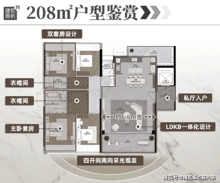 118㎡四房:四开间朝南,6.6 米阳台提升通透感,25㎡大方厅满足家庭聚餐,主卧套间超 22㎡。