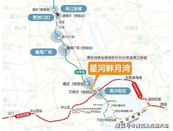 A2:项目交通十分便捷,构建了“地铁+高铁+自驾+业主楼巴”的多维交通网络。地铁方面,接驳地铁18号线横沥站,该线路时速160km/h,3站可达珠江新城,4站至天河冼村,快速连接广州核心区域,通勤时间仅需30-40分钟。高铁方面,距离南沙枢纽站约5公里,未来深江高铁接入后,可实现湾区各市快速通勤。自驾方面,门前灵新大道为主轴,临近深中通道广州出入口,半小时可达深圳。此外,首批交楼后将开通免费业主楼巴,接驳地铁与商圈。