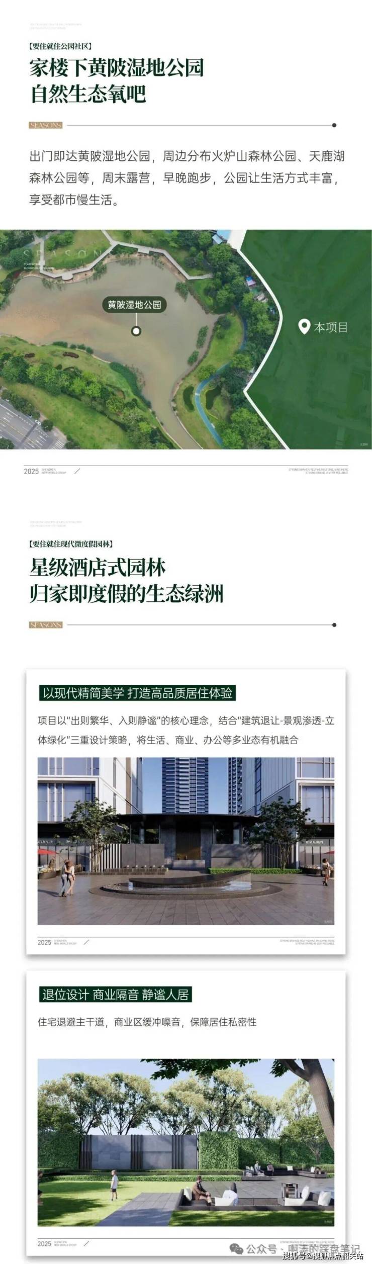 除了黄陂湿地公园,项目周边 3 公里范围内还分布着天鹿湖森林公园、火炉山森林公园等多个大型生态公园,这些公园拥有丰富的植被资源和完善的休闲配套,是周末休闲出游、健身康养的绝佳去处。居住在这里,相当于被多个城市绿肺环绕,常年享受优质的空气环境,无论是日常休闲还是长期康养,都具备得天独厚的优势。