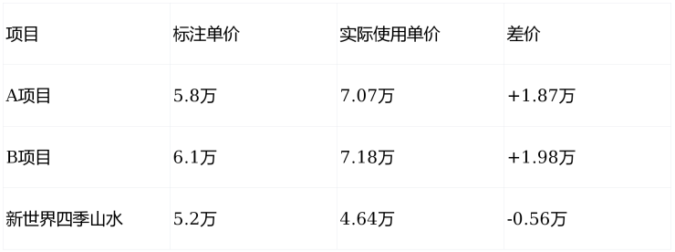 实际单价对比: