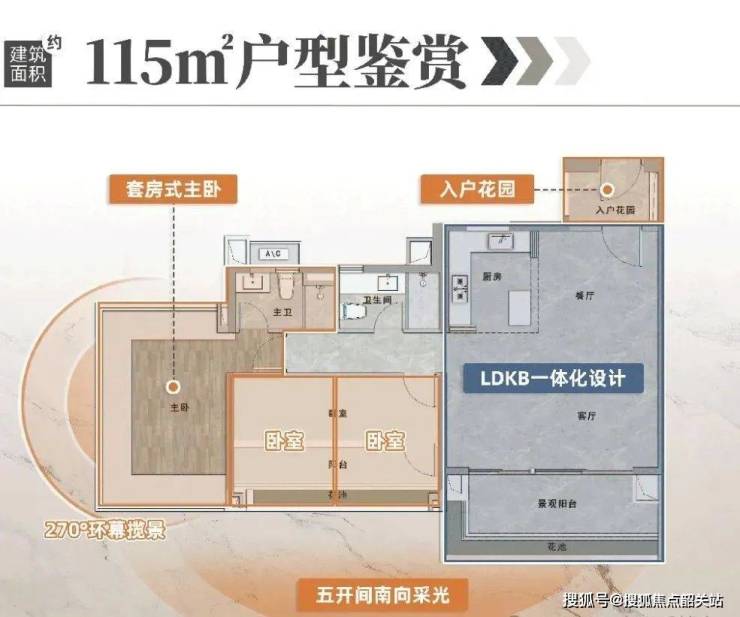 傲璟的高低分区设计,大户型全南向,能占据更广阔无遮挡的视野。且只需上下楼便能独享空中会所,恰到好处地提供了“既要又要还要”的高阶改善氛围。如建面约115㎡,五开间朝南,可最大尺度拦景入室,若想静静眺望园景或城市景观,上楼便是私家花园。