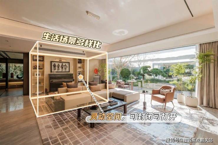 也可以打造L型玻璃推拉门,打开即可与客厅一起,连成洄游型大厅;闭合又能回归独立书房、功能室,乃至未来的二孩房。