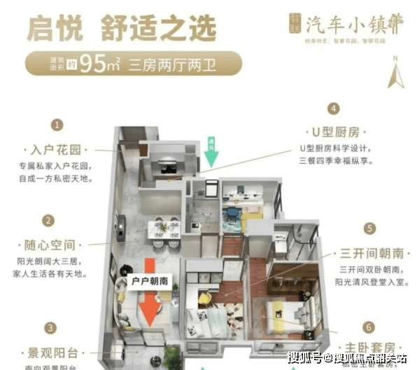 项目提供两种户型选择,分别为95平方米和125平方米,满足不同家庭结构的需求。所有住宅单元均设计为朝南方向,确保充足的采光和良好的通风条件。
