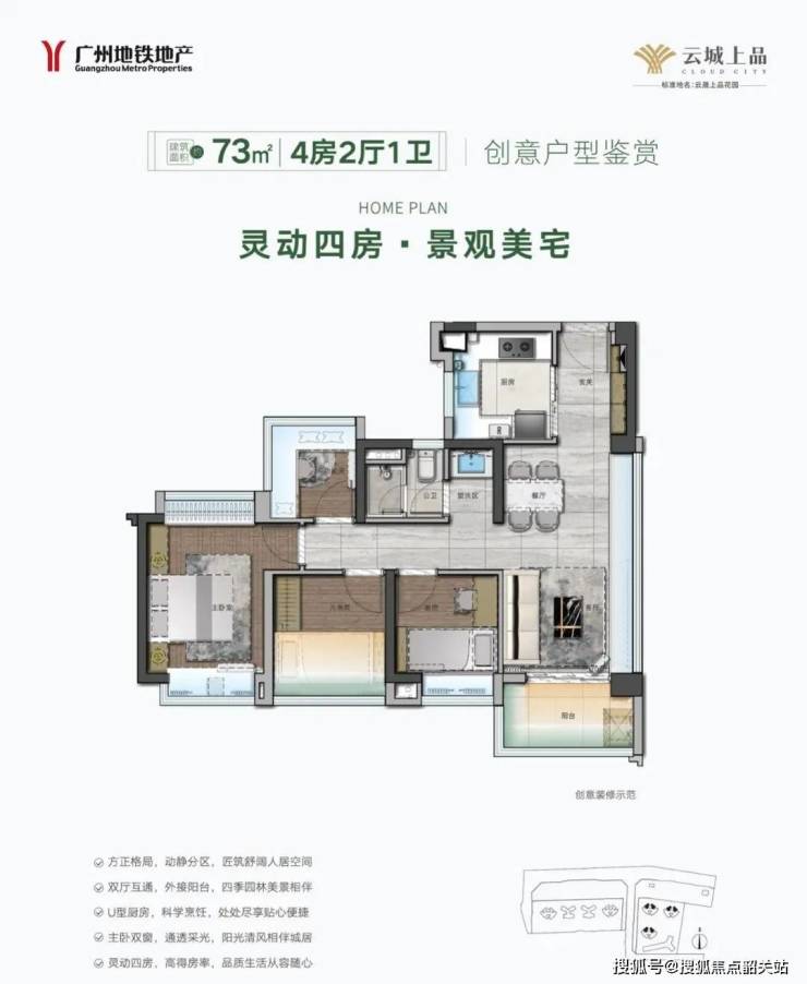 你没看错,约73㎡也做到了四房!不要说在白云,放眼整个广州也是相当罕见。