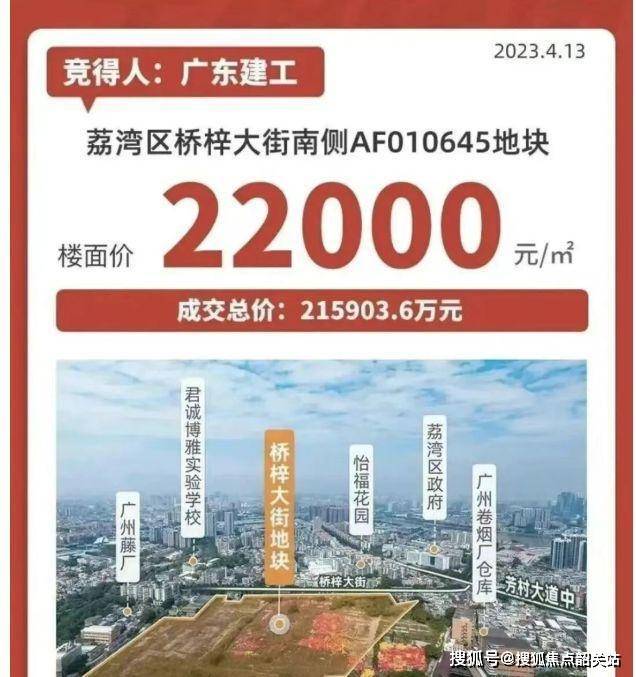 2023 年 4 月,广东建工联合体以 21.6 亿底价竞得桥梓大街南侧地块,楼面价 2.2 万 / 平。该地块位于白鹅潭板块,临近荔湾区府和芳村大道中,与 11 号线石围塘站相距 800 多米。由于需配建大量安置房及幼儿园、托儿所等设施,开发成本较高,导致房企开发意愿不高。历经近两年半时间,项目终于以建鑫・如意芳华之名面市。售楼处电话:4009909752 。