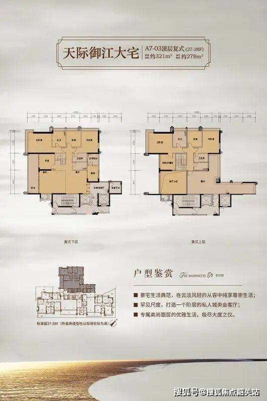 天墅产品:约28层-35层高,户型面积约360-950㎡的奢华四到五房户型;每户均特设私家入户花园,超大开间,超大阳台,无敌景观;